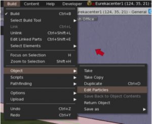 בלשונית BUILD, הנמצא בחלק העליון של המסך, לחצו על OBJECT ולאחר מכן על EDIT PARTICLES.