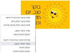 לאחר חיפוש התמונה הרלוונטית, יש לשמור אותה בשם. המקום לשמירה יהיה בשולחן העבודה.