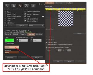 לאחר בחירת הפאה שעליה יוקרן אתר האינטרנט או סרטון, יש ללחוץ על לשונית TEXTURE ולפתוח את החלון של MATERIALS ולשנות ל MEDIA, ואחר מכן, ללחוץ על כפתור CHOOSE.